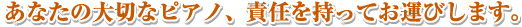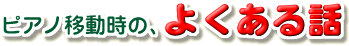いずれも「キャスターが付いているし、人数がいればこのくらい…」と甘い考えで起きた事故です。ピアノはアップライトタイプでもで230Kg〜250Kgもある重量物。たかが室内や別室移動と思っても、やはりプロに任せた方が安心です。 |